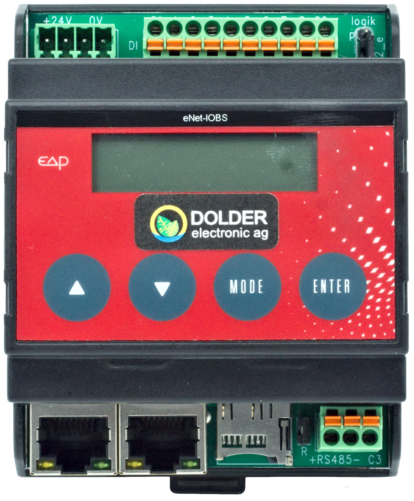 Erweiterungsmodule stellen zusätzliche digitale oder analoge Ein- und/oder Ausgänge bereit. Der Universalregler eNet1 verbindet sich mit dem Basismodul über Modbus/TCP. Das Basismodul dient als Gateway zu einem externen Modbus/RTU-Bus (RS-485) sowie zu den direkt am Basismodul angeschlossenen I/O-Modulen.
