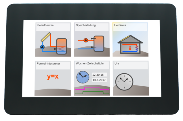 Das Raumgerät eNet-RG dient der bequemen Bedienung des Universalreglers eNet1 vom Wohnraum aus. Das Linux-basierte Touch-Display ist die ideale Lösung, um auf die SimpleUI zuzugreifen und z.B. die Raumheizung zu beeinflussen.
