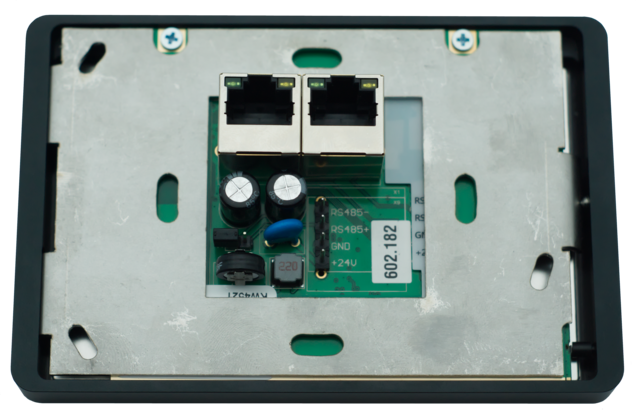 Das Raumgerät verfügt über einen integrierten Ethernet-Switch mit zwei LAN-Schnittstellen, sodass weitere Raumgeräte, Regler oder andere Netzwerkgeräte angeschlossen werden können.
