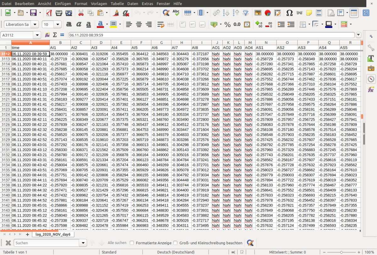 Die Auswertung der Daten erfolgt z.B. mit Hilfe einer Tabellenkalkulations-Software wie LibreOffice® Calc oder Microsoft Excel®. Mit Funktionen wie der bedingten Formatierung und Diagrammen lassen sich die Daten flexibel aufbereiten und auswerten. Zudem kann für die Detailanalyse jederzeit auf die Rohdaten zugegriffen werden.